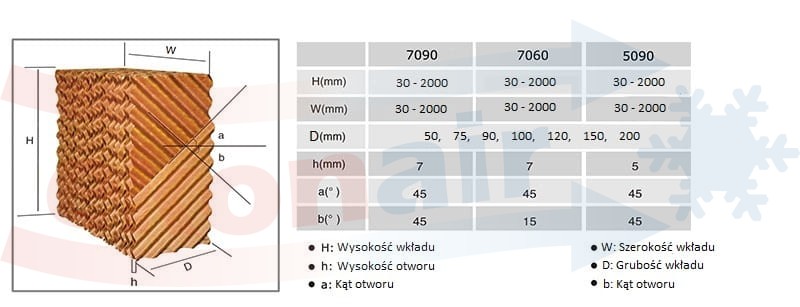 Dimensions of the cooling element (cellulose) - honeycomb structure: 970x886x100mm (set of 4)