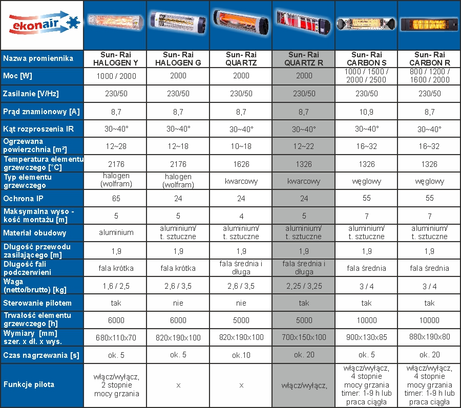 The quartz heating element has a high surface temperature and is fully operational in just a few moments. The device emits large amounts of infrared (heat) radiation and soft red light. The heating range of the Sun-Rai Quartz R radiator is about 12-22 m² and the maximum installation height is 5m. The radiator has a mechanical switch and a remote control for the radiator, thanks to which it is possible to mount the radiator at a safe distance, which prevents accidental contact with the hot surface.